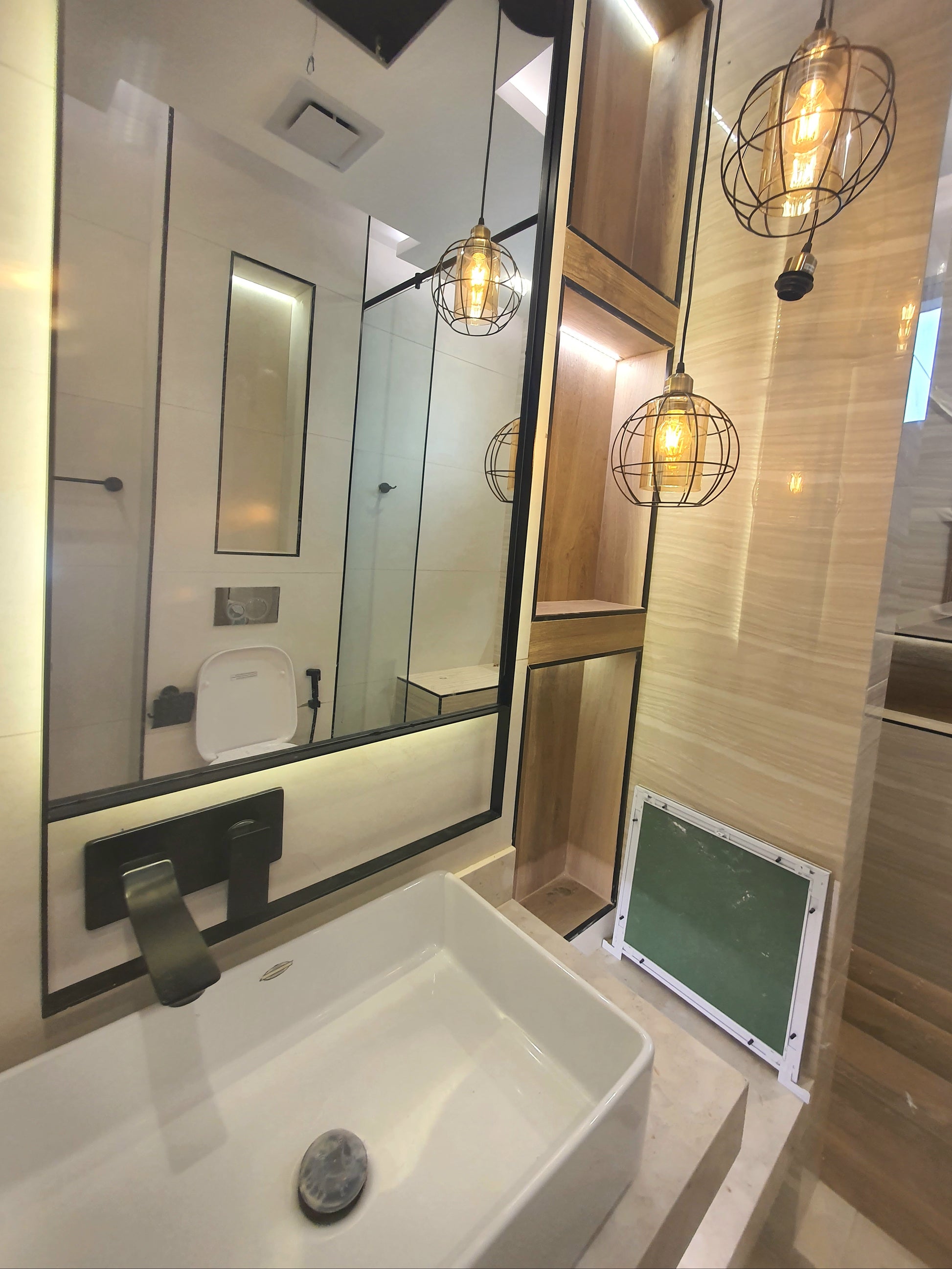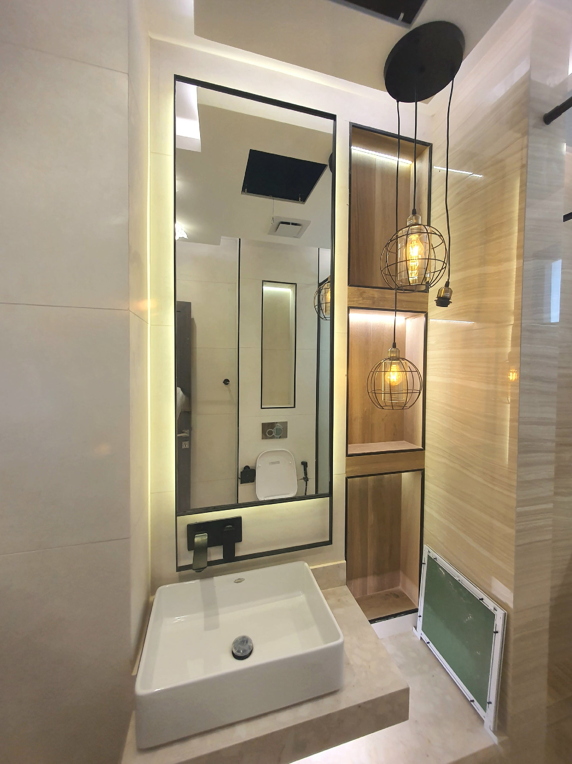 Acrab mirror made of 6mm thickness Belgium mirror Double coat backing with high quality stainless steel solid frame 25x5mm thick with electroplating color. the mirror includes backlit 3000k warm white with hanging place in the back.