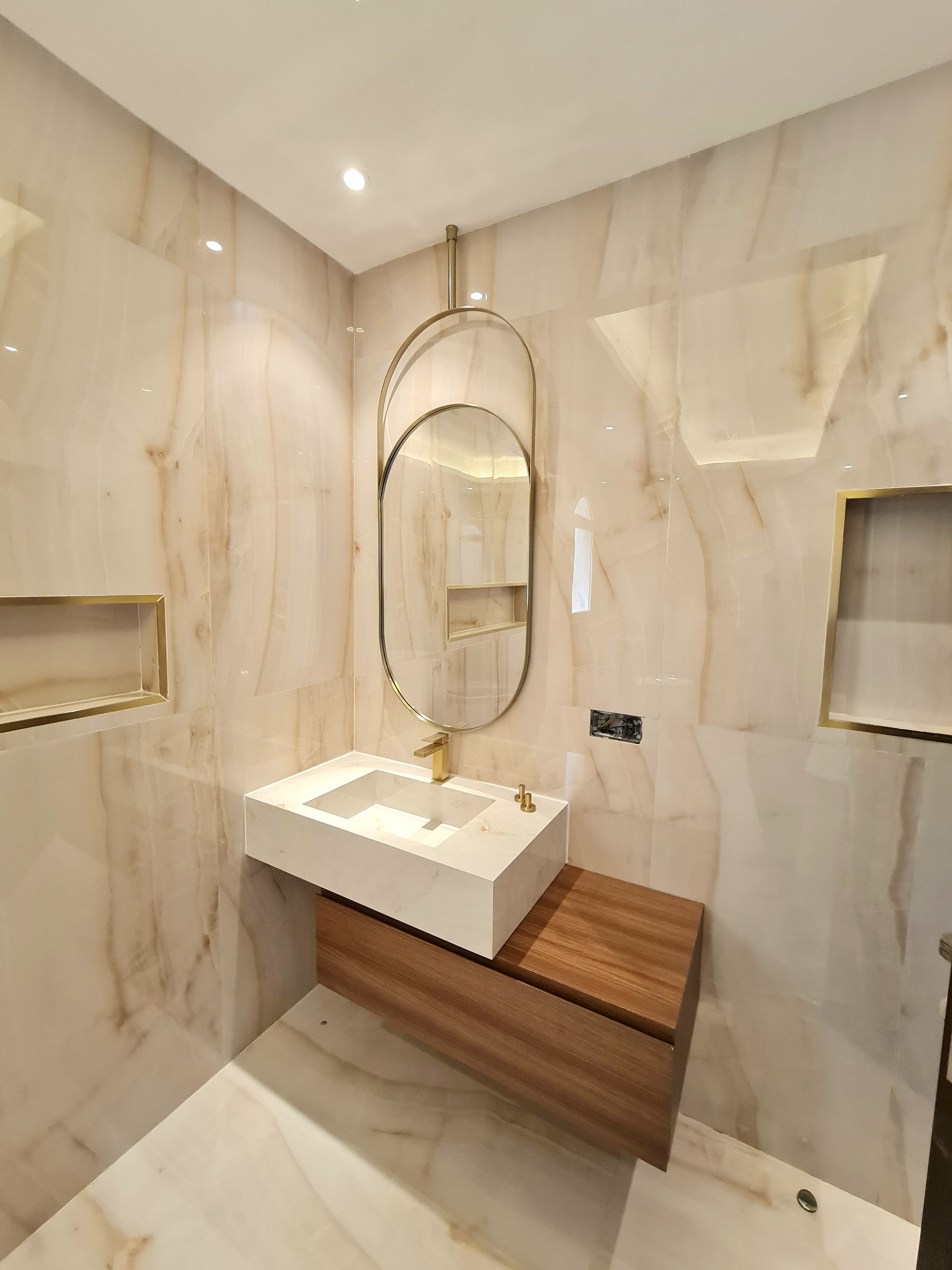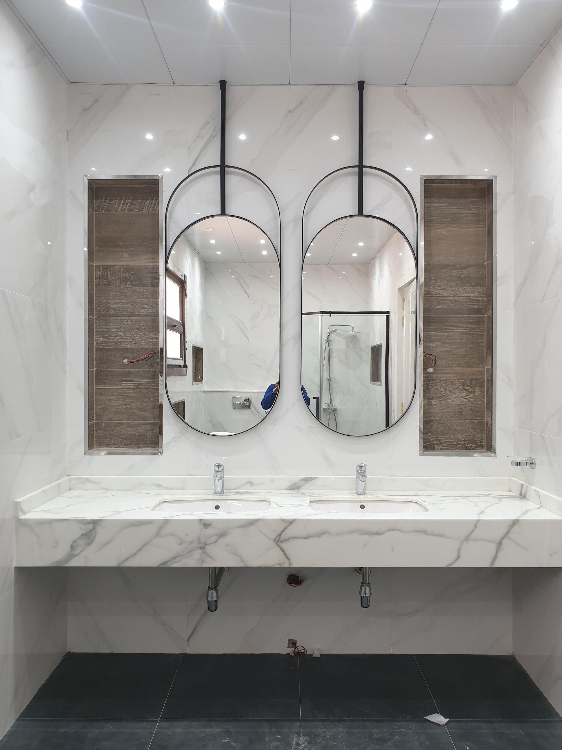 Franz mirror made of 6mm thickness Belgium mirror Double coat backing with high quality stainless steel solid frame 25x5mm thick with electroplating color. the mirror includes backlit 3000k warm white with hanging place in the back.