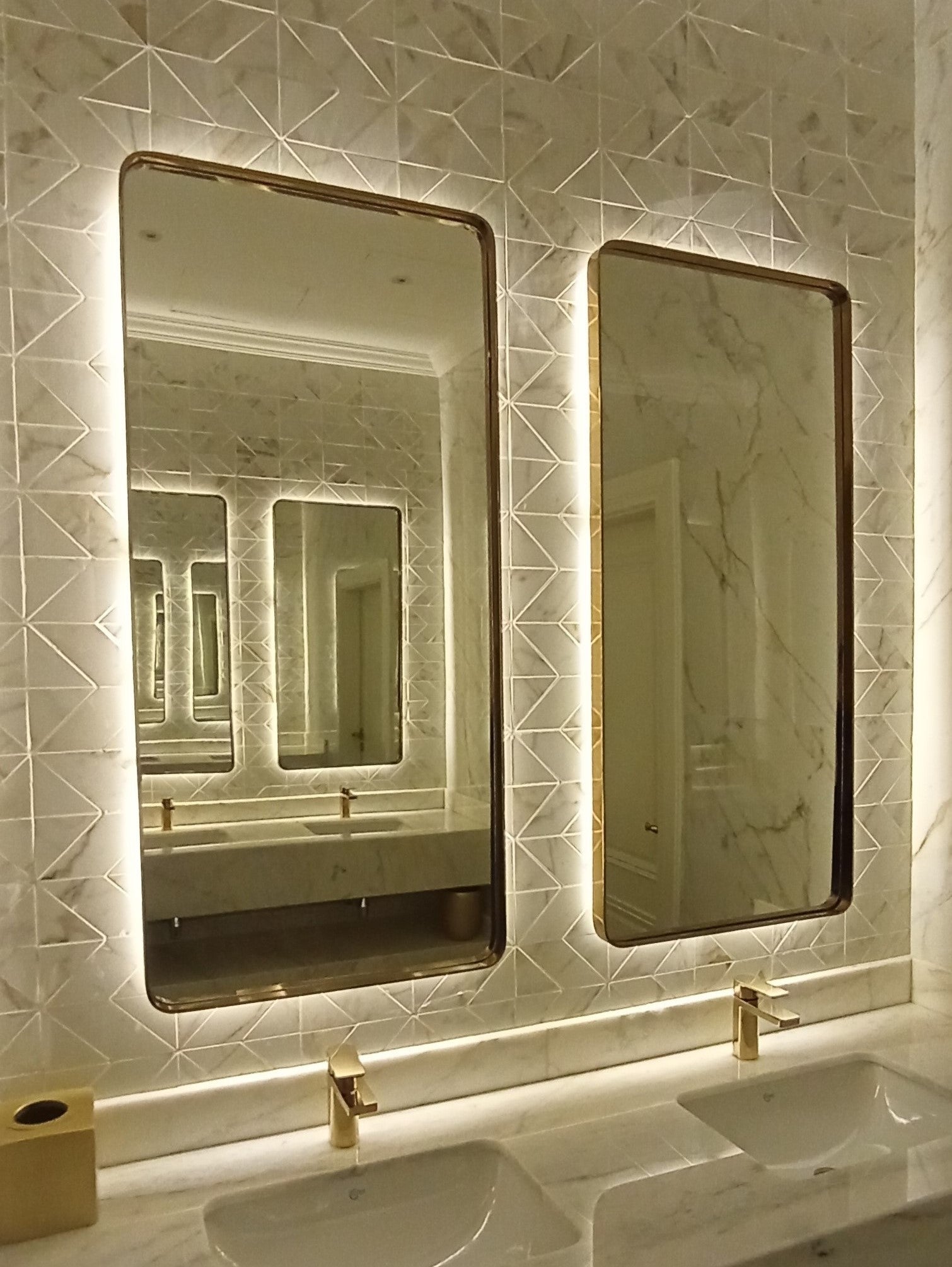 Mirror made of 4mm thickness Belgium mirror Double coat backing .the mirror includes backlit 3000k warm white with hanging place in the back.