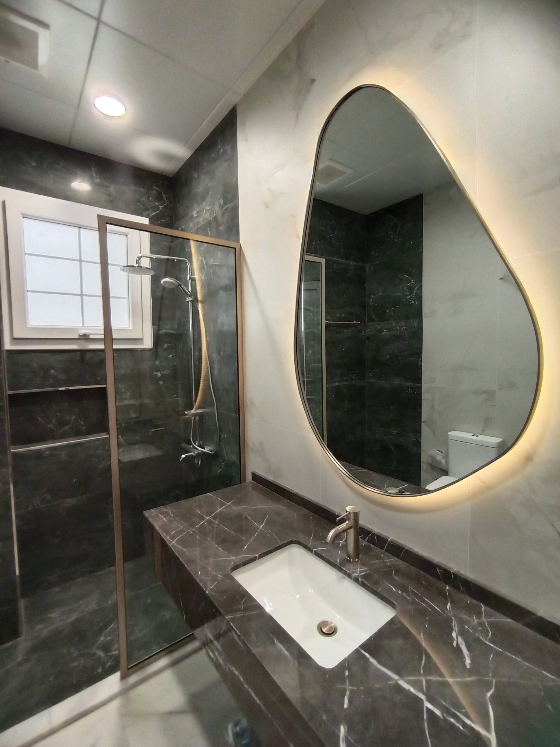 Mirror made of 4mm thickness Belgium mirror Double coat backing .the mirror includes backlit 3000k warm white with hanging place in the back.